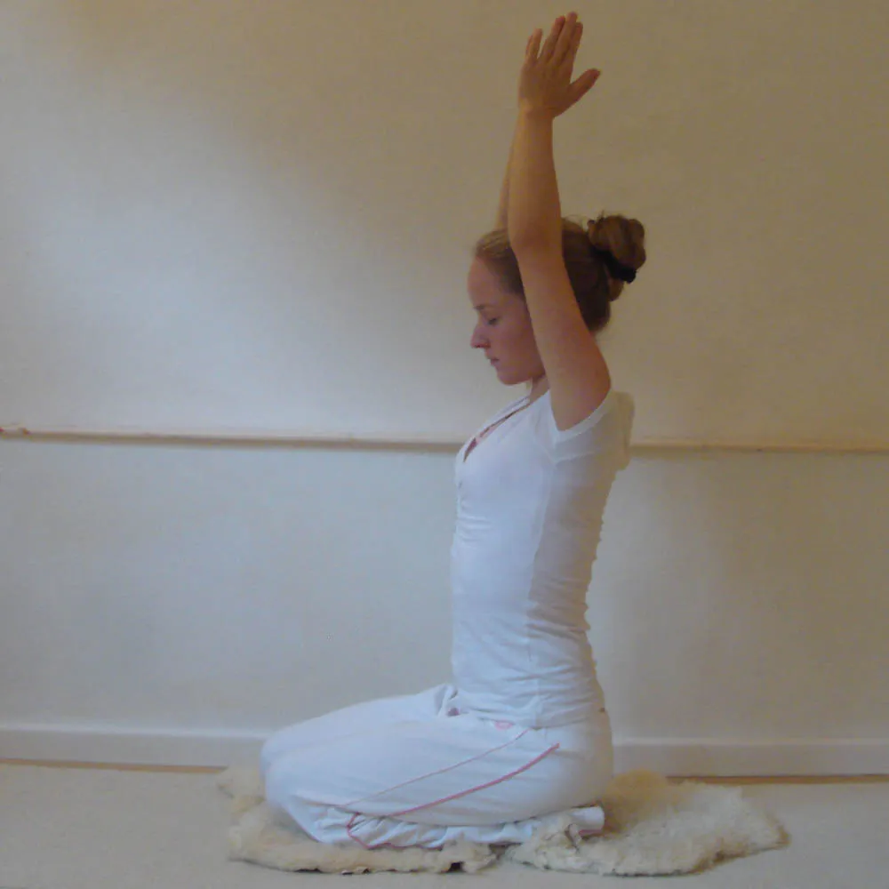 Diese Übung öffnet das Herz-Zentrum und stimuliert die Thymus-Drüse (wichtiger Teil des Immunsystems).