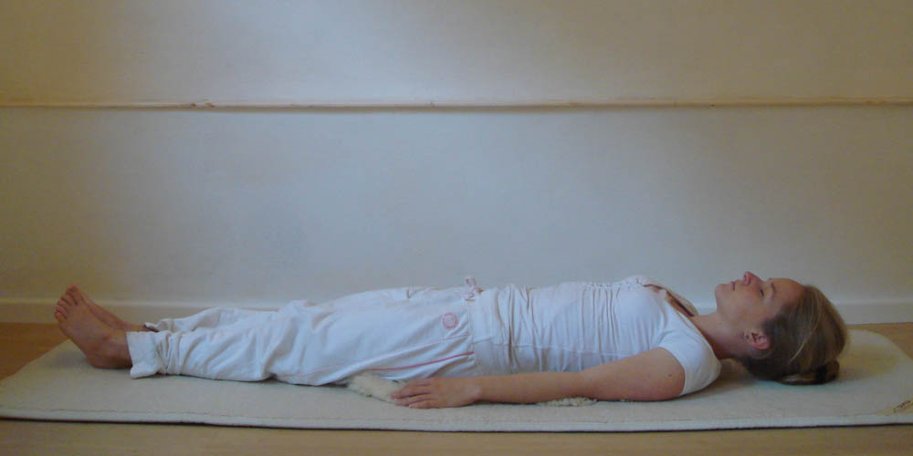 In der Rückenlage mit den Armen zur Seite, den Handflächen nach oben: Entspanne!